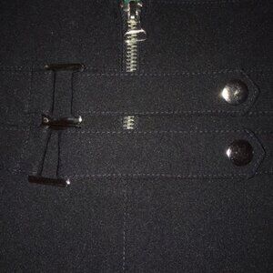 Black pencil skirt with unique zip and snap closure. 15.5” across the waist, 16.5” in length. EUC