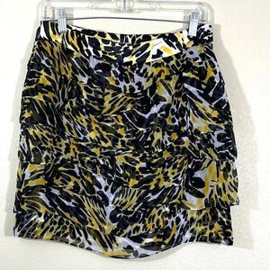 NWT Cache Skirt Suit Set Leopard Yellow Black Layered Ruffled Top Small Skirt 6