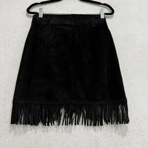 Cache Skirt Womens 8 Black Suede Leather Fringe Wrap Western Boho Mini Festival