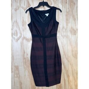 Cache Sleeveless Ribbed Bodycon Dress – Shimmering Black & Dark Red, Size 0