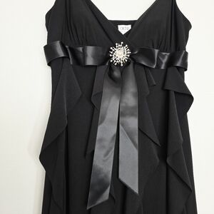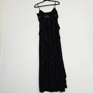 Cache Spaghetti Straps Waterfall Ruffles Black Formal Long Dress Women's Size 10