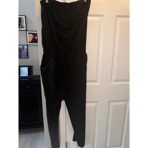 Cache Strapless Jumpsuit Wide Leg Drawstring Waist Black Casual Size M