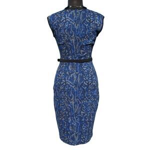 Cache Stretch Dress Lined Removable Belt Blue Black Reptile Print New $168 NWT