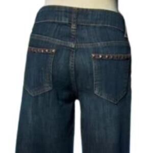 Cache Stretch Nail Head Stud Straight Leg Jean Pant Dark Denim New $98 NWT