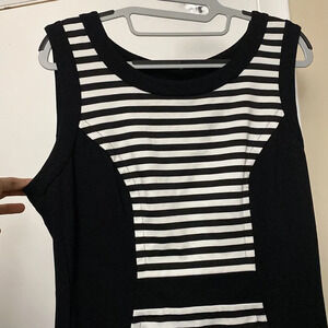 Cache Stretch Stripe Black White Sleeveless Dress Size 12
