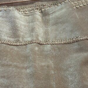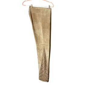 Cache Suede Pants with Hand Crochet Peekaboo Insert at Bottom Camel Tan Sz 2