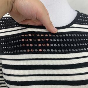 CACHE SWEATER DRESS WOMENS XS NAUTICAL STRIPED STRETCHY KNIT BODYCON PERFORATED
