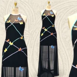 Cache Tadashi Y2K vintage Maxi Dress with Butterfly Accents size small