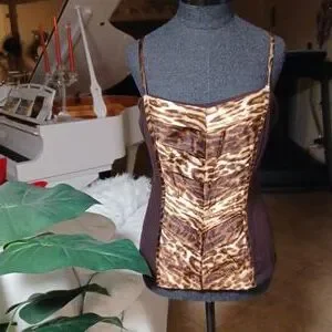 Animal print tank, satin animal print inlay, adjustable straps, built in bralette.
