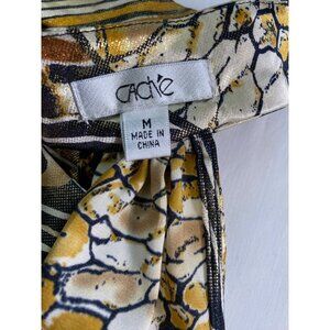 The Cache women’s M sleeveless top features an eye-catching geometric design with shimmer detail, blending comfort and style. Crafted from a polyester-spandex mix, it offers a relaxed fit suitable for various occasions. City, Preppy, Shimmer, Fall, Autumn, Colorful, Bohemian.