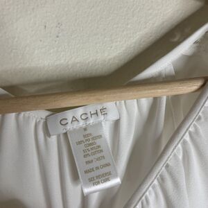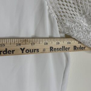 Cache Top Womens Medium White Lace Mesh Long Sleeve Sheer Romantic Blouse Elegant