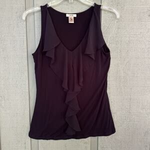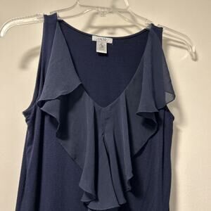 Cache Top womens size XS sleeveless black Jersey Chiffon Waterfall Ruffle Witchy
