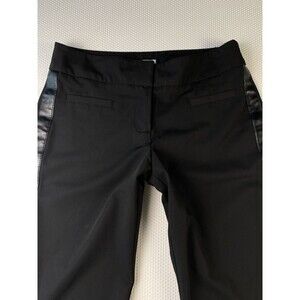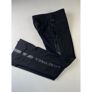 Cache Tuxedo Leather Stripe Mid Rise Pants Size 0 Black Y2K Bootcut Flare VTG