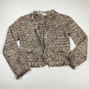 Cache Tweed Cropped Fringe Jacket Metallic Bouclé Blazer Small Y2K Parisian Chic
