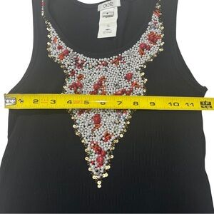Cache UNIQUE Embellished Tank Top SZ Small Black Chic Beaded Bull Head EUC