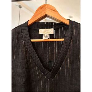 16 bust 22 length Cache V Neck 3/4 Sleeve Sweater Size Small Tan/Black