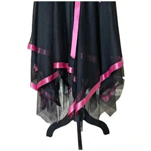 Cache VTG 90s Y2K Black Strapless Tulle Mesh Handkerchief Hem Dress Ruched Goth