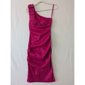 Cache VTG Y2K Hot Pink One Shoulder Ruched Cocktail Event Prom Sexy Dress