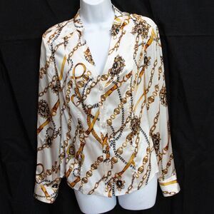 Cache Vgt Y2K 90s Button Up Equestrian Scarf Western Silk Shirt V-Neck Size M