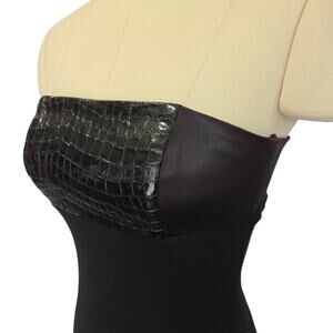 Cache Vintage 90s Black Leather Maxi Dress Size XS P Strapless Reptile Gothic