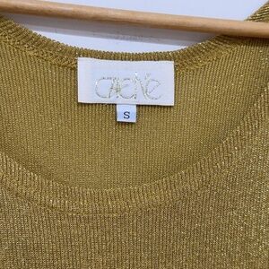 Cache Vintage 90s Metallic Gold Sleeveless Stretchy Knit Tank Top Size S