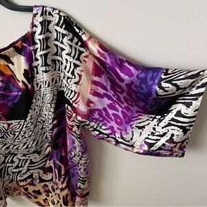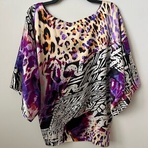 Cache' Vintage Abstract Animal Print Silk Top Dolman Sleeve Purple Artsy 90s S