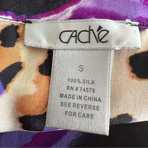 Cache' Vintage Abstract Animal Print Silk Top Dolman Sleeve Purple Artsy 90s Sz S - in excellent used condition. When laid flat, top measures approximately 21.5 inches from pit to pit and 28 inches long.