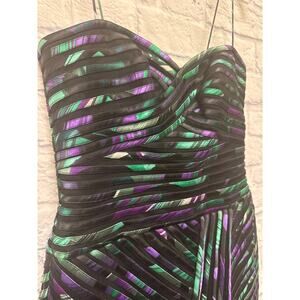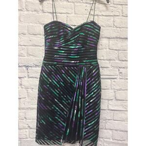 Cache Vintage Black Purple Green Mardis Gras Mini Sweetheart Party Dress SZ 6