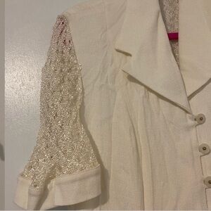 Features: button front. Lace details. Notched collar