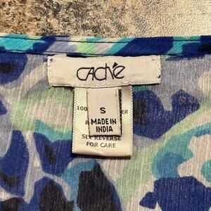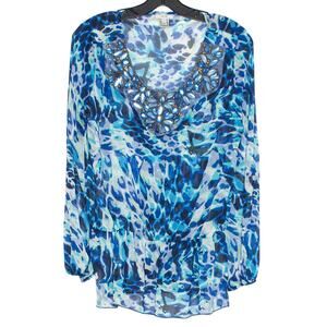 Cache Vintage Top Y2K Coastal Grandma Boho Cottage Sheer Embellished Blue Small