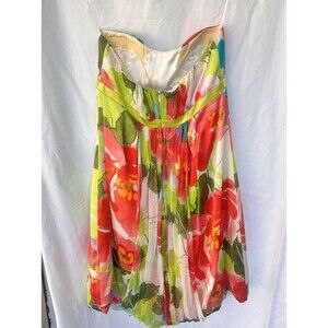Cache Vintage Women's Floral Strapless SILK Bubble Dress Empire Waist Tropical