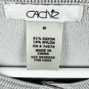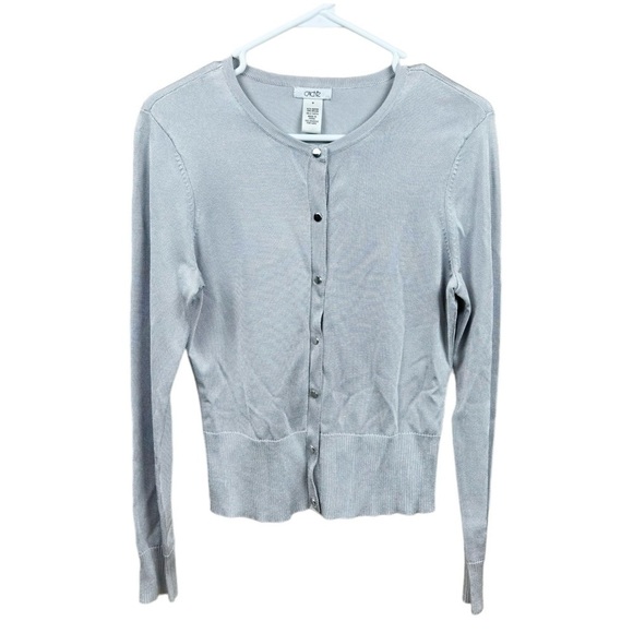 Cache Vintage Y2K Silver Gray Rayon Nylon Ribbed Snap Front Cardigan Sweater