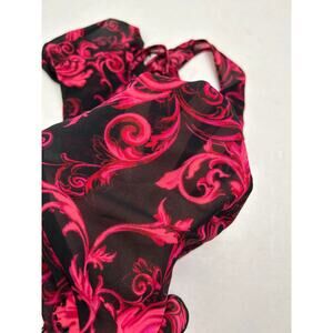 Vintage Cache women’s size, extra small, black and pink floral sleeveless top. Slightly sheer 100% polyester and beaded. Cowl neck, excellent condition, side, zipper and little side tie.