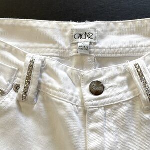 Cache White Denim Cropped Bling Detail Pants. P/3/A1413