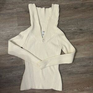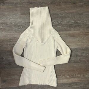 Cache Women Cowl Neck Zipper Pullover Sweater