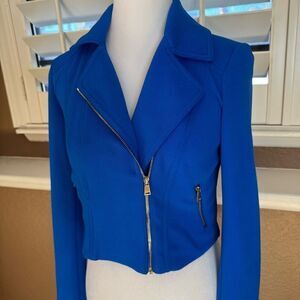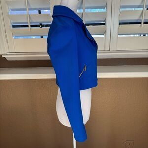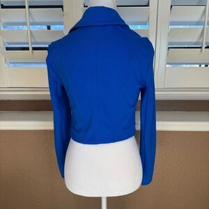 Cache Women's 2 Asymetrical Zip Moto Jacket Royal Blue Cropped Blazer City Style