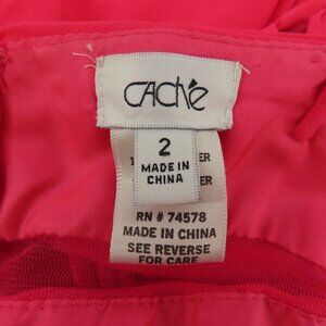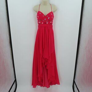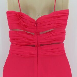 Cache Womens 2 Bright Pink Pleated Rhinestone Cutout Mesh Hi Low Dress Formal