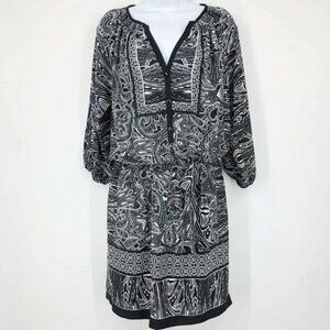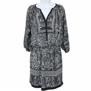 Cache Women’s Blouson Dress Size M Paisley Print Black & White Button Up V Neck