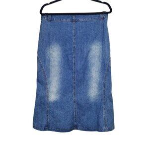Cache rhinestone embellished denim skirt in blue. Belt loops. Rhinestone embellishments. Denim skirt. No stains or holes. Y2K embellished denim skirt.