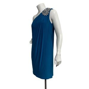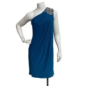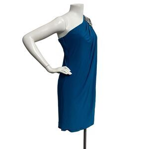 Cache Women's Blue one shoulder crystal Size 0 Evening Casual Mini Formal Dress