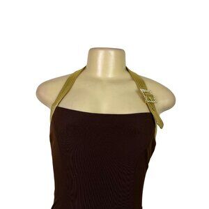 Cache Womens Brown Halter Maxi Gown With Metallic Gold Straps Sz 4