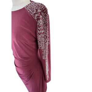 Cache Women's Burgundy Sequin Bead Embellished Bodycon Evening Dress Size 10
