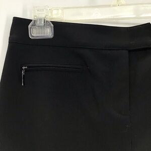 Classic Chic Cache black mini skirt. Great piece that can be dressed up with tights & heels or loafers. Features two front zip pockets, front zip hook & button & has a bit of stretch.