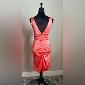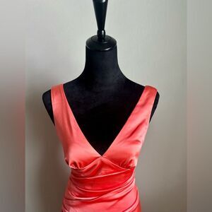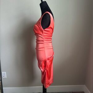 Cache Women’s Cut V Neck Sleeveless Ruched Vibrant Coral Bodycon Dress Size 4