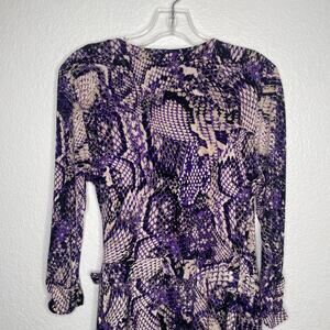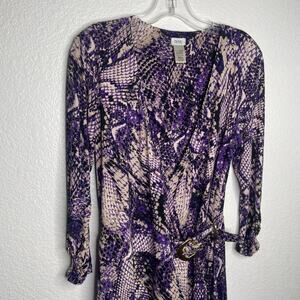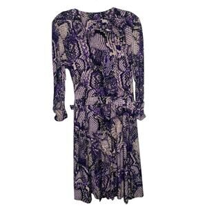 Cache Womens Dress Size L Vintage Purple Snake Print Long Sleeve Wrap V-Neck