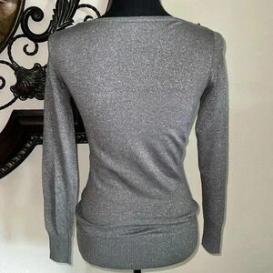 Cache Women’s Gray Spark Silver Sweater Jumper Beaded Rhinestone Accent Collar