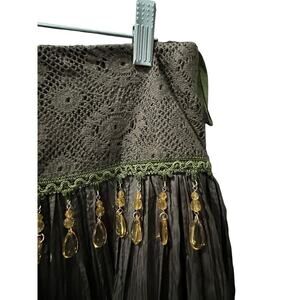 Cache Women's Green Cotton Blend Fringe Detail Midi Skirt Size 8