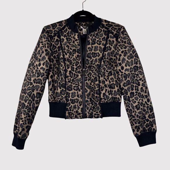 Cache Womens Jacket Brown Leopard Wool Full Zip Bomber Cropped Stretch Medium