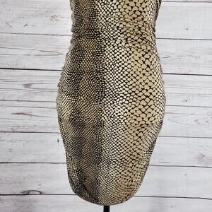 Cache Women's One Shoulder Snakeskin Print Ruched Bodycon Dress Size Small