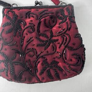 Cache Women's Red & Black Beaded Clutch Purse Evening Hand Bag Crossbody